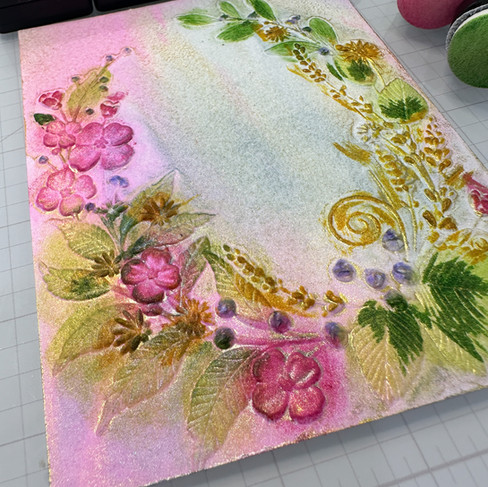 I cant tell you how uncomfortable I was with the earlier stages of this card before the colors dry and settle. I'm so glad I stuck with it and I hope you will too to get this shimmer and delightful interactions of colors.