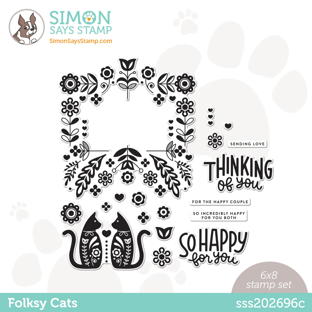 Stamp So Happy for You sentiment from the Folksy Cats Stamp Set in Citrine ink and emboss with clear powder to give it a touch of dimension.
