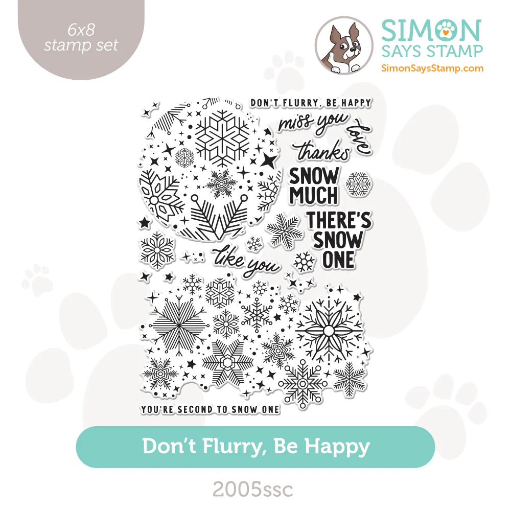 1 NEW and exclusive Simon Says Don’t Flurry, Be Happy 6x8 inch clear stamp set