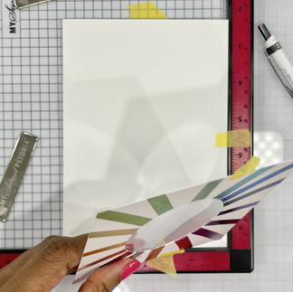 2. Align ruler approximately 1/4" below each line and apply the Tombow MONO Adhesive Permanent Glue Tape about 1/2" from the center of the pattern towards the outward edge of the cardstock.