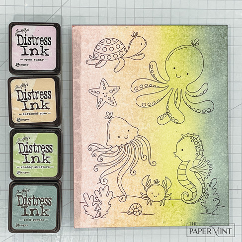 Ink-blend the four colors vertically in the following order onto the "Octopus" printed Watercolor Card