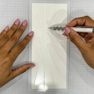 The card base needs some Distress Ink blending before it is ready for stenciling. As a 1st step I marked lightly in pencil where the sun's "face" would be and then did some messy circular ink blending. Don't get too precious about it being smooth, the stencil will make it all look magical when done!