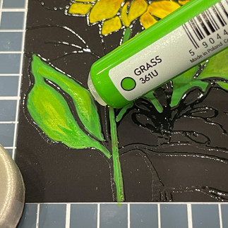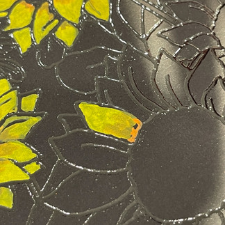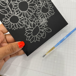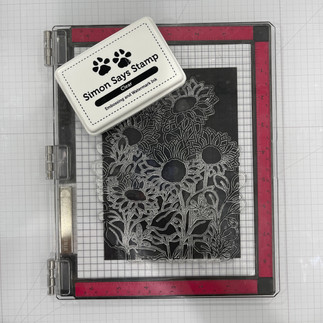 Stamp Sunflower Garden image in Clear Ink on Black Alcohol Ink Cardstock