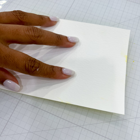 Place 4 1/4" x 6" Distress Watercolor Cardstock into a Splat Box and mist with Squeezed Lemonade Distress Spray Stain.