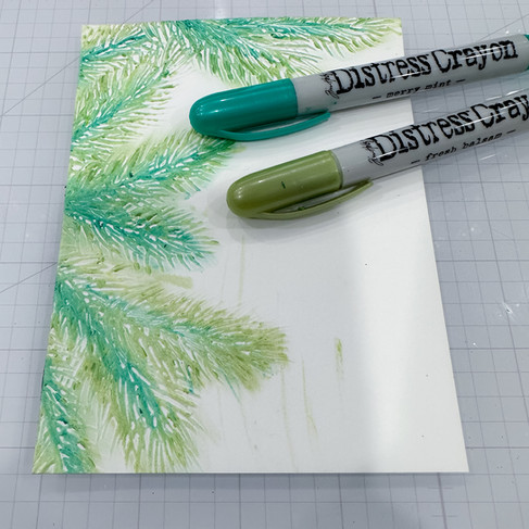 Repeat on a 2nd piece of Distress Watercolor Cardstock with Fresh Balsam and Merry Mint Mica Stain.